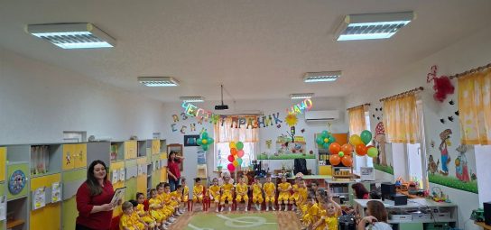 Най-малките съкровища от група „Малчугани“ зарадваха своите майки с красиво и трогателно тържество, пренасяйки ни на вълшебна Иглична поляна – цяла в слънчице огряна, където с много обич и старание подариха най-нежните цветя, защото ги обичат най-много на света. ![]()